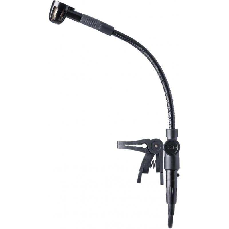 | La pinza del C 519 si fissa sulla campana di trombe, sassofoni, tromboni, tube o altri strumenti a fiato. Il suo diagramma polare cardioide ne fà lo strumento ideale per l’uso vicino ai monitor da palco, mentre la sua risposta in frequenza piatta fornisce un suono naturale, potente e chiaro. L’adattatore A400 permette un facile collegamento ai trasmettitori compatti AKG PT450 e PT40. |