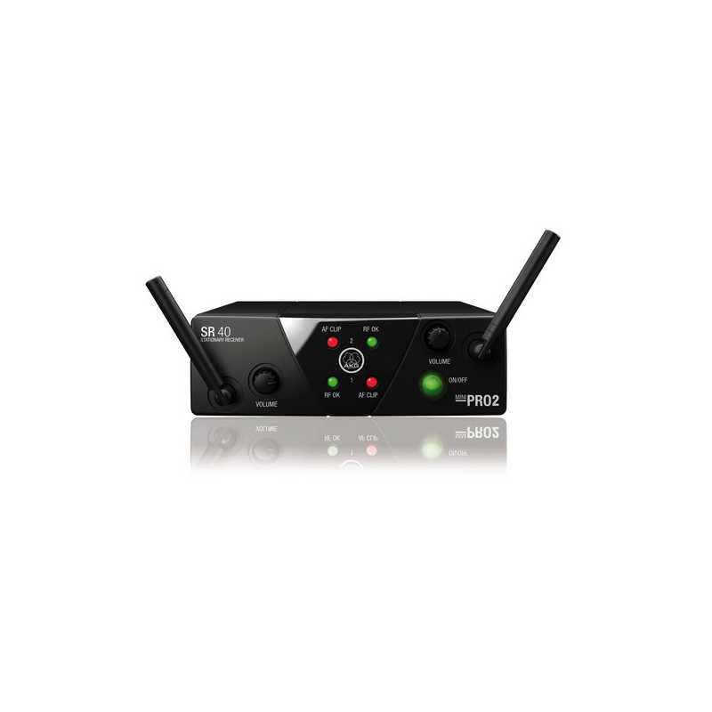 La tecnologia unica HDAP (High Definition Audio Performance) assicura il suono migliore possibile, più realistico, in qualsiasi momento. Il mini ricevitore SR 40 dispone di tre LED di stato che indicano lo stato On/Off, la potenza del segnale ricevuto (RF Ok), e l’audio clipping (AF Clip). Il controllo Volume regola il livello di uscita sul jack 1/4″. L’alimentazione in modalità commutata opera su qualsiasi tensione CA da 110 a 240V e comprende gli adattatori EU, UK e USA. Il PT 40 Mini è probabilmente il trasmettitore tascabile più piccolo e leggero della sua categoria. Un affidabile connettore di uscita mini XLR consente il collegamento di ogni microfono in miniatura AKG compatibile. La durata della batteria del trasmettitore è la stessa mitica “30 ore per singola batteria AA”, riducendo la necessità di sostituire le batterie, e quindi risparmiando realmente denaro nel lungo periodo.