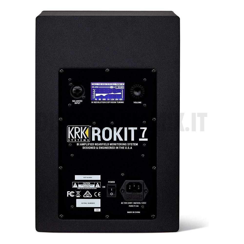 Il sistema dispone di un tweeter da 1″ e di un woofer da 7″ in Kevlar. La risposta in frequenza arriva fino a 40kHz, con una perfetta resa per le tracce vocali e anche un’ottima risposta sulle basse. Il sistema di biamplificazione proprietario con ampli in classe D garantisce un SPL fino a 110dB. La nuova waveguide proprietaria è stata progettata per garantire un ascolto preciso e dettagliato, con imaging ottimizzato. Le KRK Generation 4 Rokit garantiscono un ottimo livello qualitativo grazie alla presenza della bass port nella parte frontale del cabinet, a differenza di altri monitor della stessa fascia di prezzo che hanno solitamente la bass port sul retro. In questo modo si evitano rifrazioni indesiderate sulle pareti che possono amplificare le basse frequenze e colorare il vostro mix in modo molto spiacevole. L’uscita delle basse frequenze dalla bass port anteriore è pulita ed accurata, anche ad un alto SPL. Il controllo separato tramite apposito potenziometro sul pannello posteriore per le alte e le basse frequenze, ed una serie di connessioni multiple in ingresso, completano la ricca dotazione di questi studio monitor che si confermano come una delle migliori soluzioni disponibili sul mercato, considerando soprattuto il rapporto tra prezzo e prestazioni.