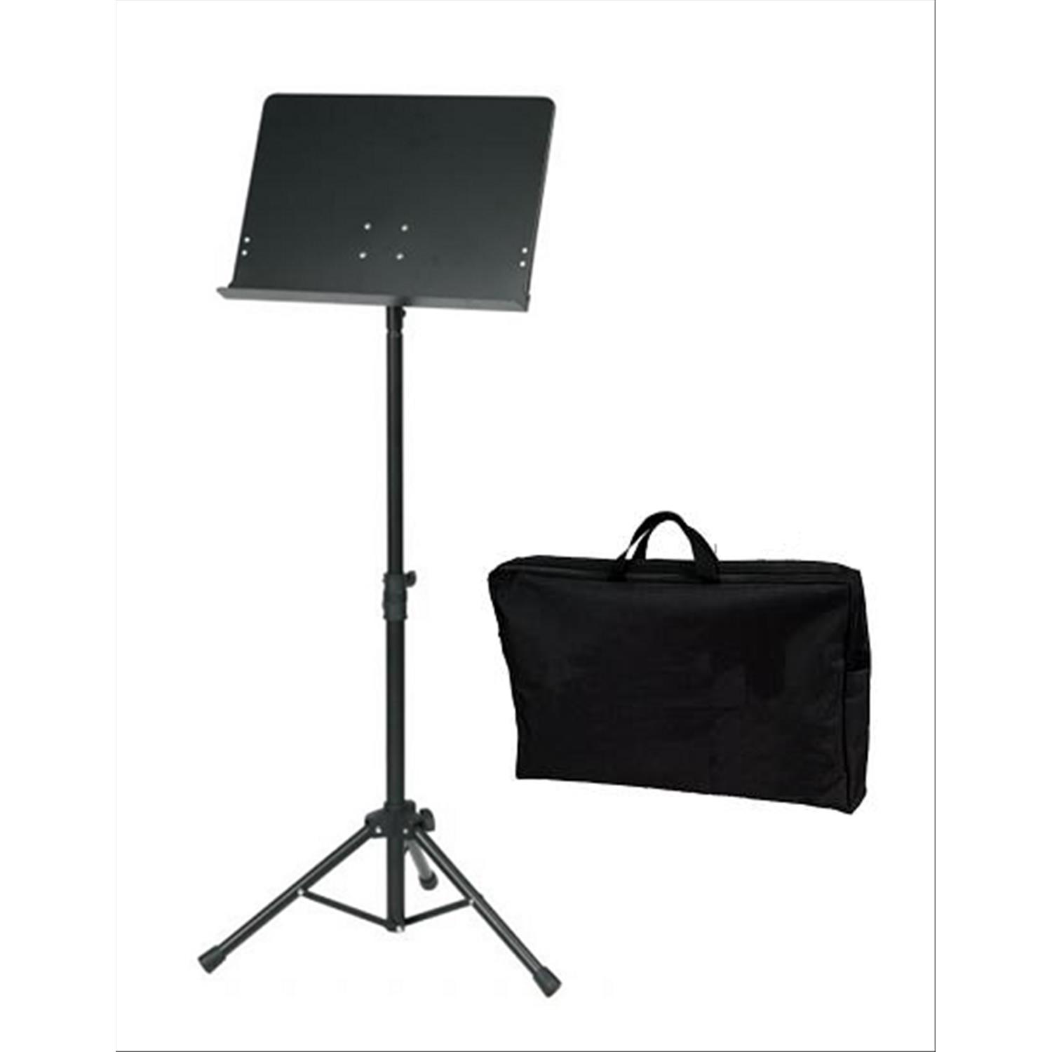 Leggio in metallo regolabile in altezza, con tavola in metallo inclinabile, colore nero.