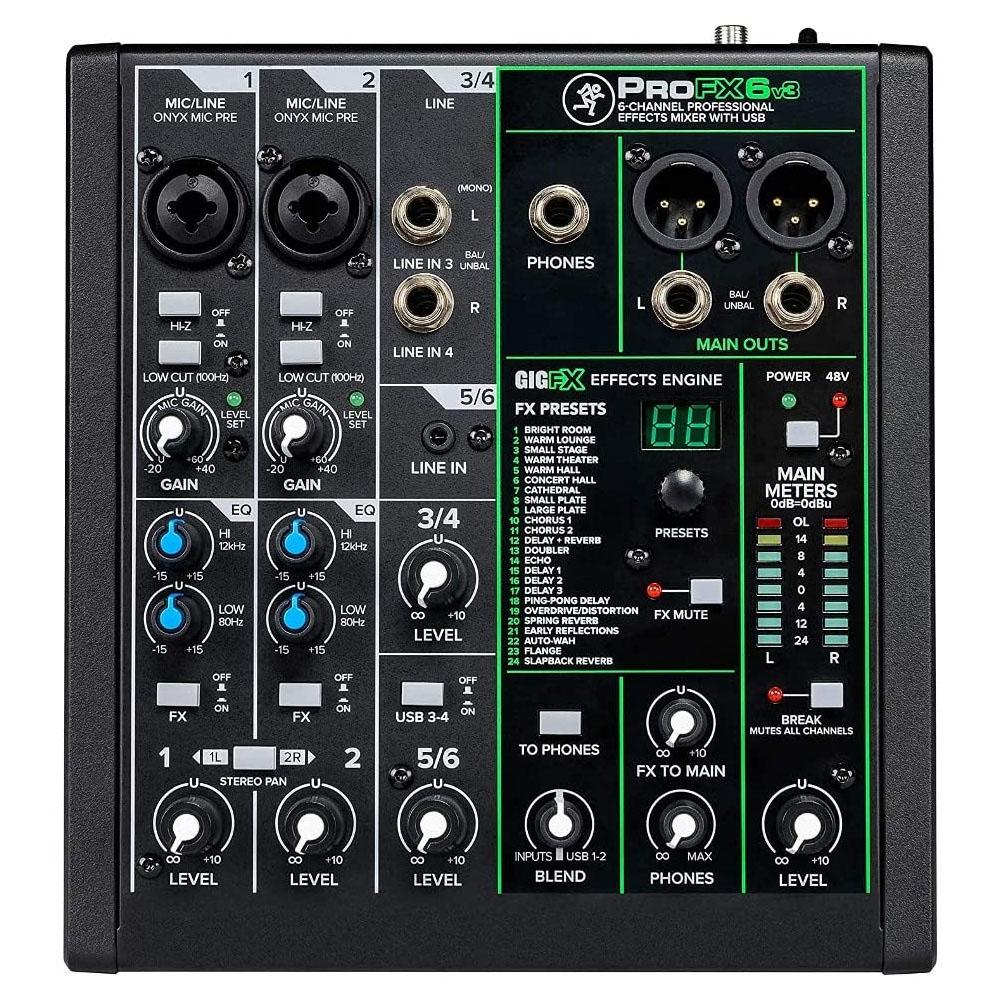 - 2 preamp microfonici COMBO Mackie ONYX + 60db GAIN, phantom y 2 band EQ Hi-Z.