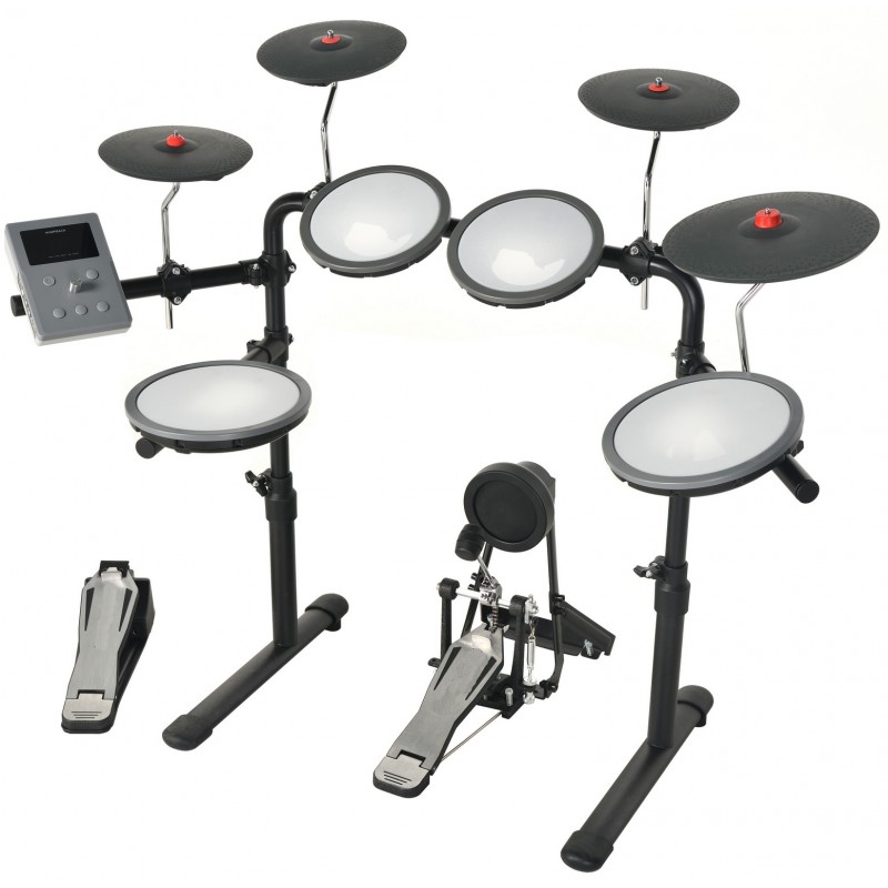 Fai un passo avanti con la batteria elettronica QPD-1 Plus di Oqan. Questa versione è dotata di un rack più alto e spazioso e include un kit di nove pezzi che ti darà ancora più possibilità: due tom da 7 pollici, rullante e tom da 8 pollici, tre piatti da 8 pollici e un piatto Ride da 10 pollici. Inoltre, il kit completo di grancassa con pedale full-size e il controller HH ti permetteranno di aggiungere tecniche avanzate al tuo stile di gioco.