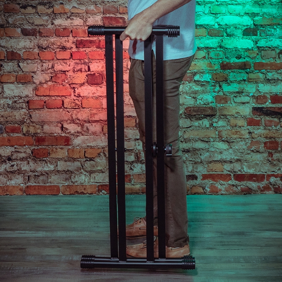 T/20 è il supporto regolabile per tastiera a livello singolo e telaio doppio di Quik Lok