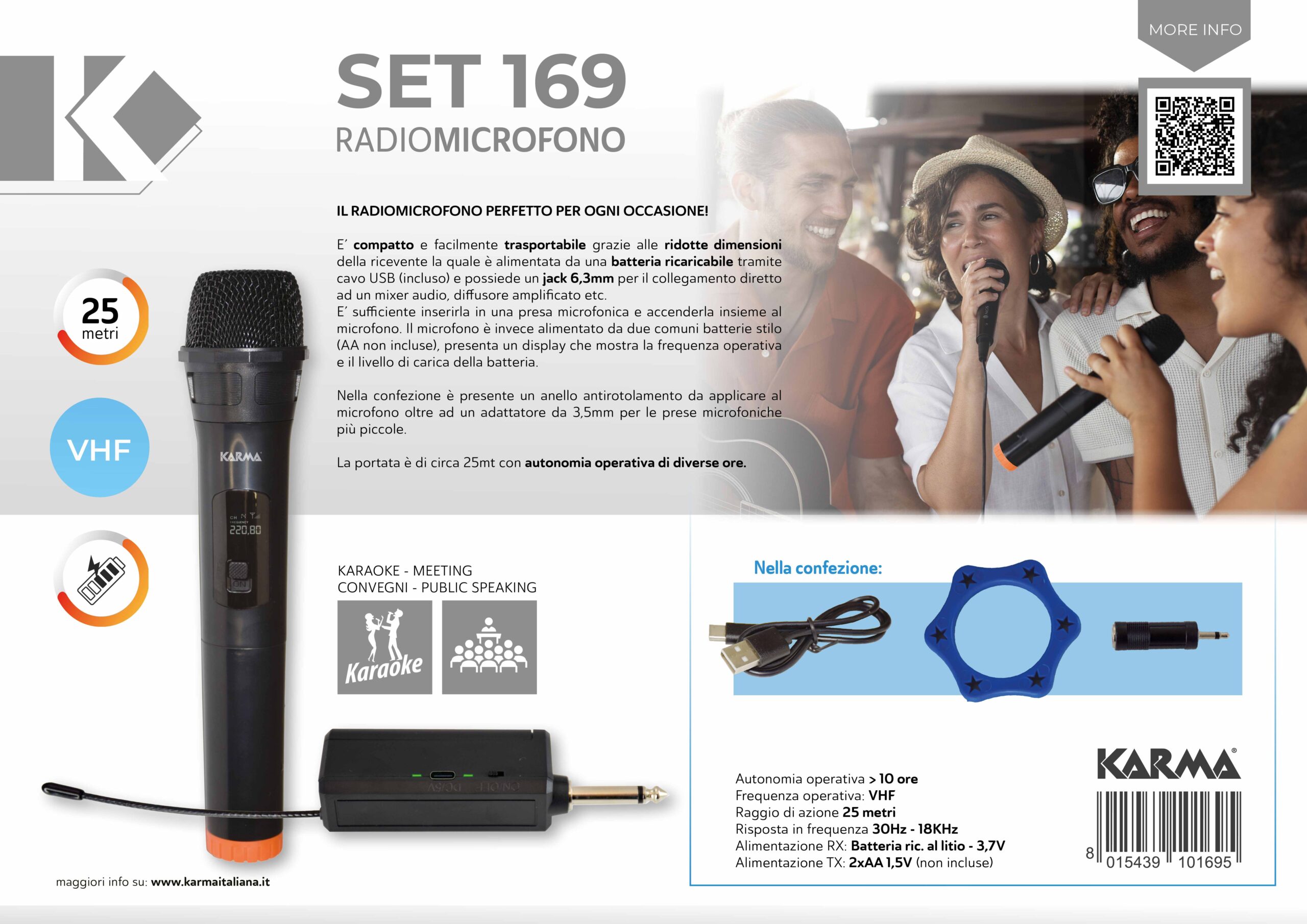 Il radiomicrofono perfetto per ogni occasione. E’ compatto e facilmente trasportabile grazie alle ridotte dimensioni della ricevente la quale è alimentata da una batteria ricaricabile tramite cavo USB (incluso) e possiede un jack 6,3mm per il collegamento diretta ad un mixer audio, diffusore amplificato etc. E’ sufficiente inserirla in una presa microfonica e accenderla insieme al microfono. Il microfono è invece alimentato da due comuni batterie stilo(AA non incluse), presenta un display che mostra la frequenza operativa e il livello di carica della batteria. Nella confezione è presente un’ anello antirotolamento da applicare al microfono, un cavo micro USB per la ricarica della ricevente e a un adattatore da 3,5mm per le prese microfoniche più piccole. La portata è di circa 25mt con autonomia operativa di diverse ore.