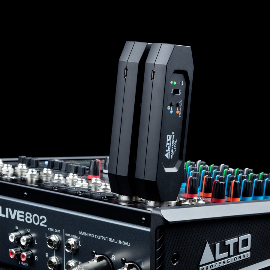 Alto Professional BLUETOOTH TOTAL 2 è un sistema di ricezione del segnale tramesso da device dotati di uscita audio Bluetooth, come computer PC e Mac, tablet, smartphone, device iOS e AndroID che rende qualsiasi diffusore o ingresso XLR compatibile con questo protocollo di comunicazione senza fili.
