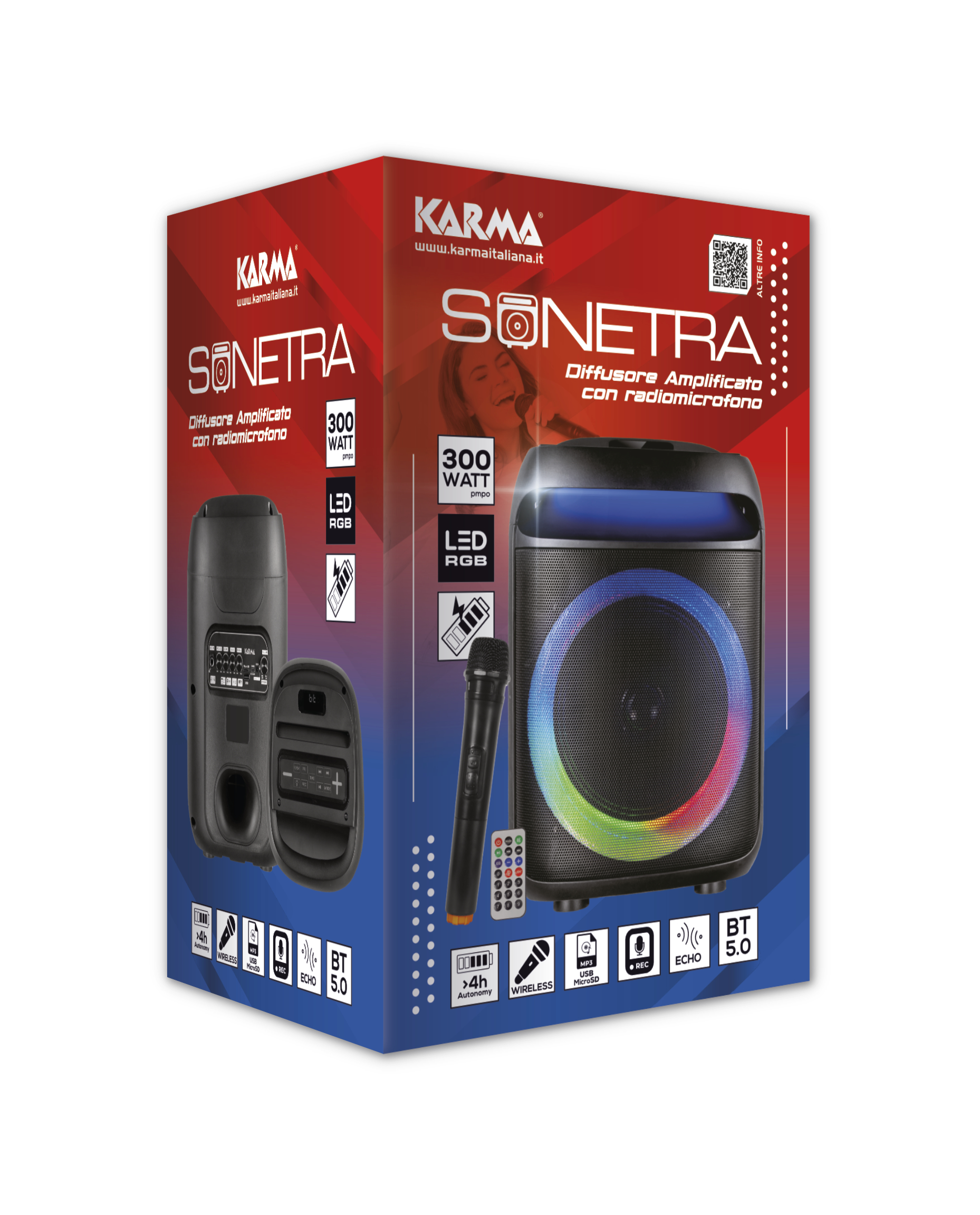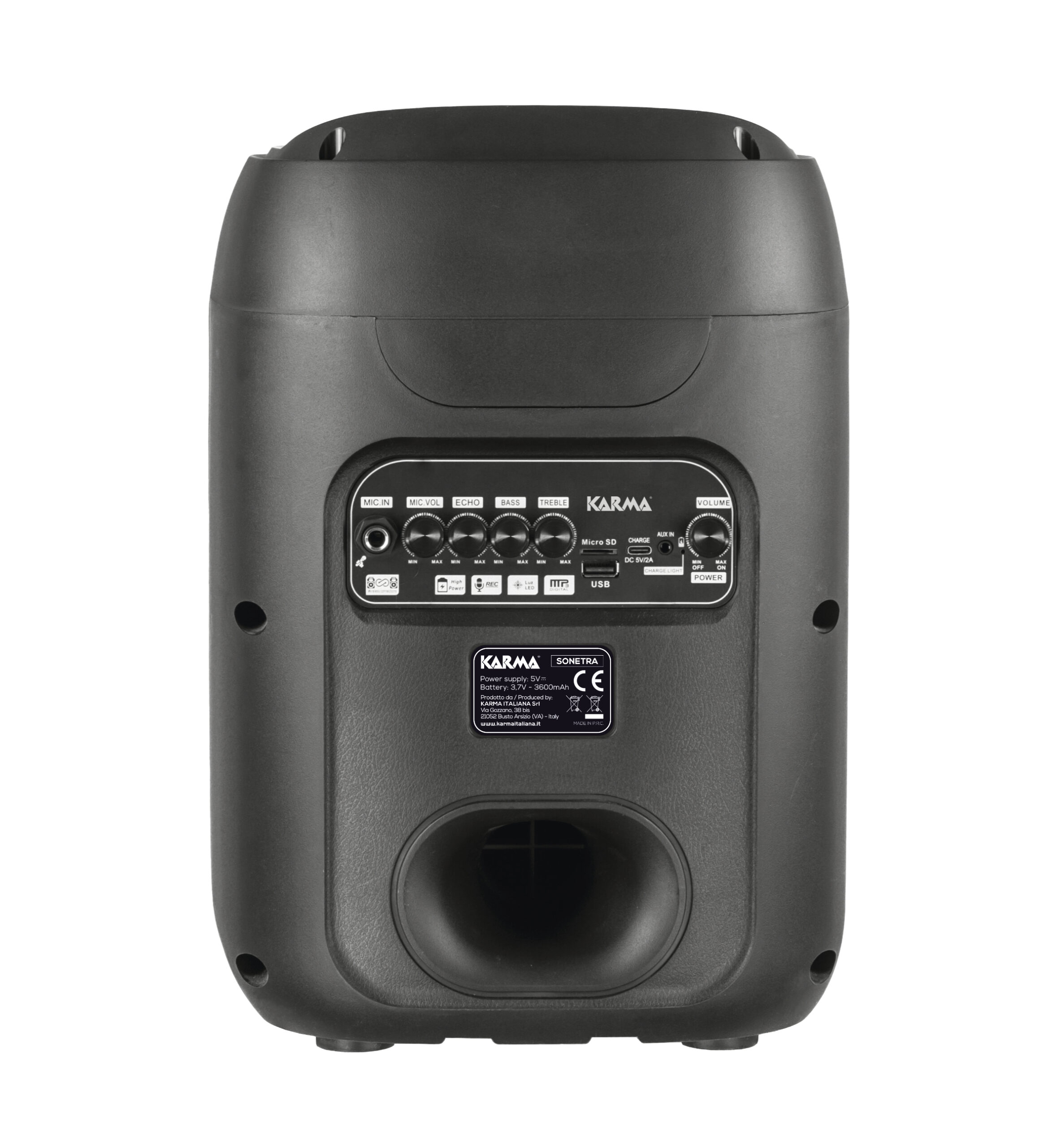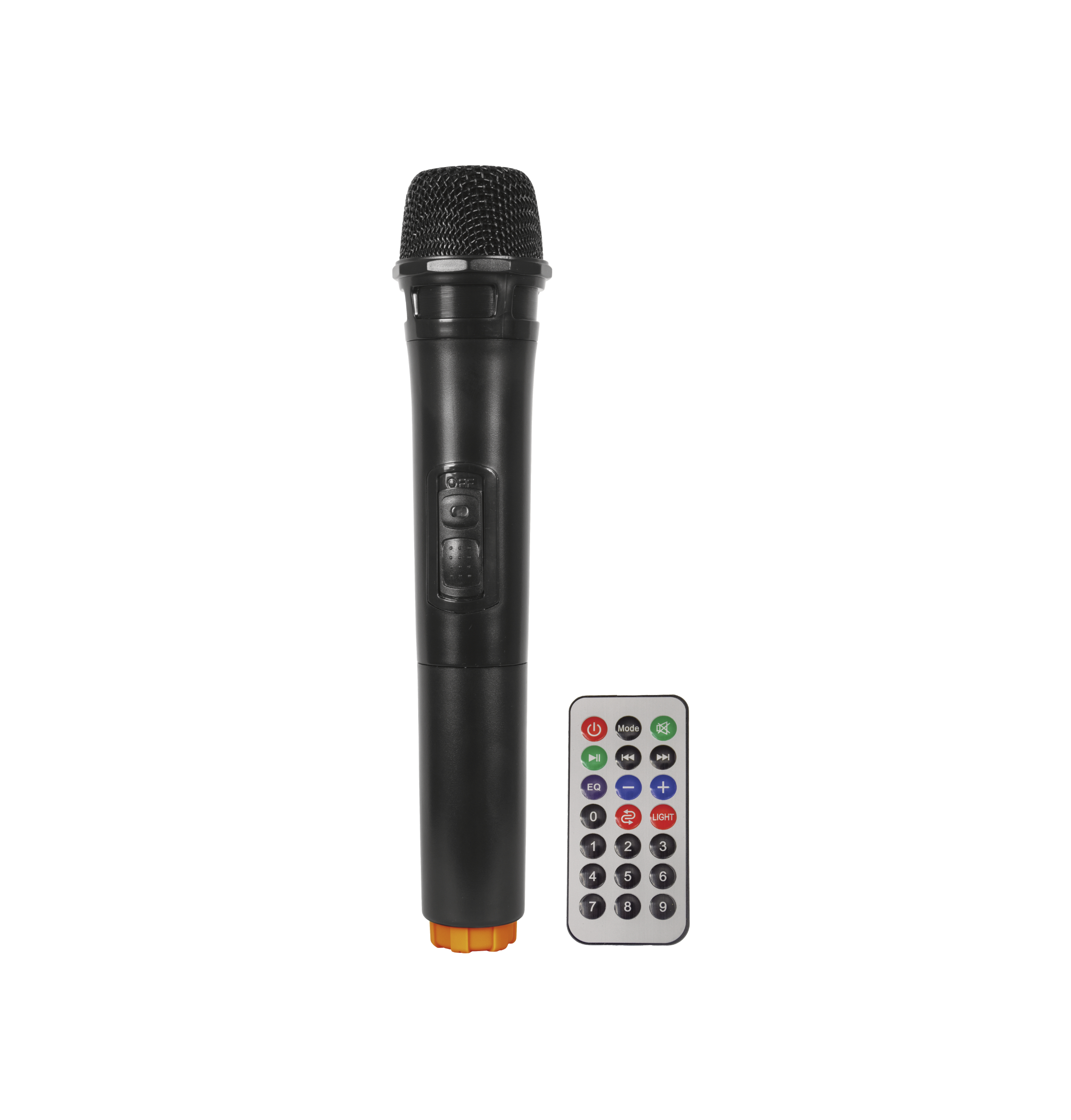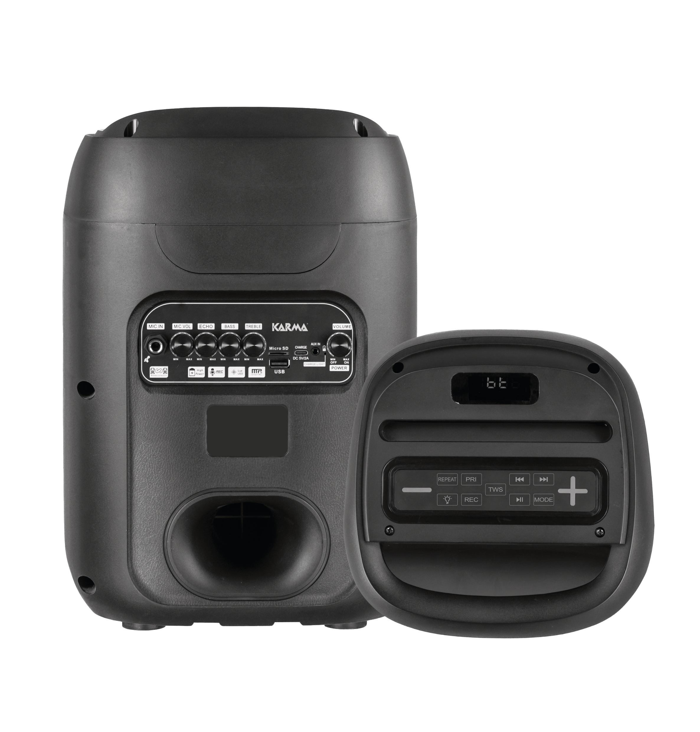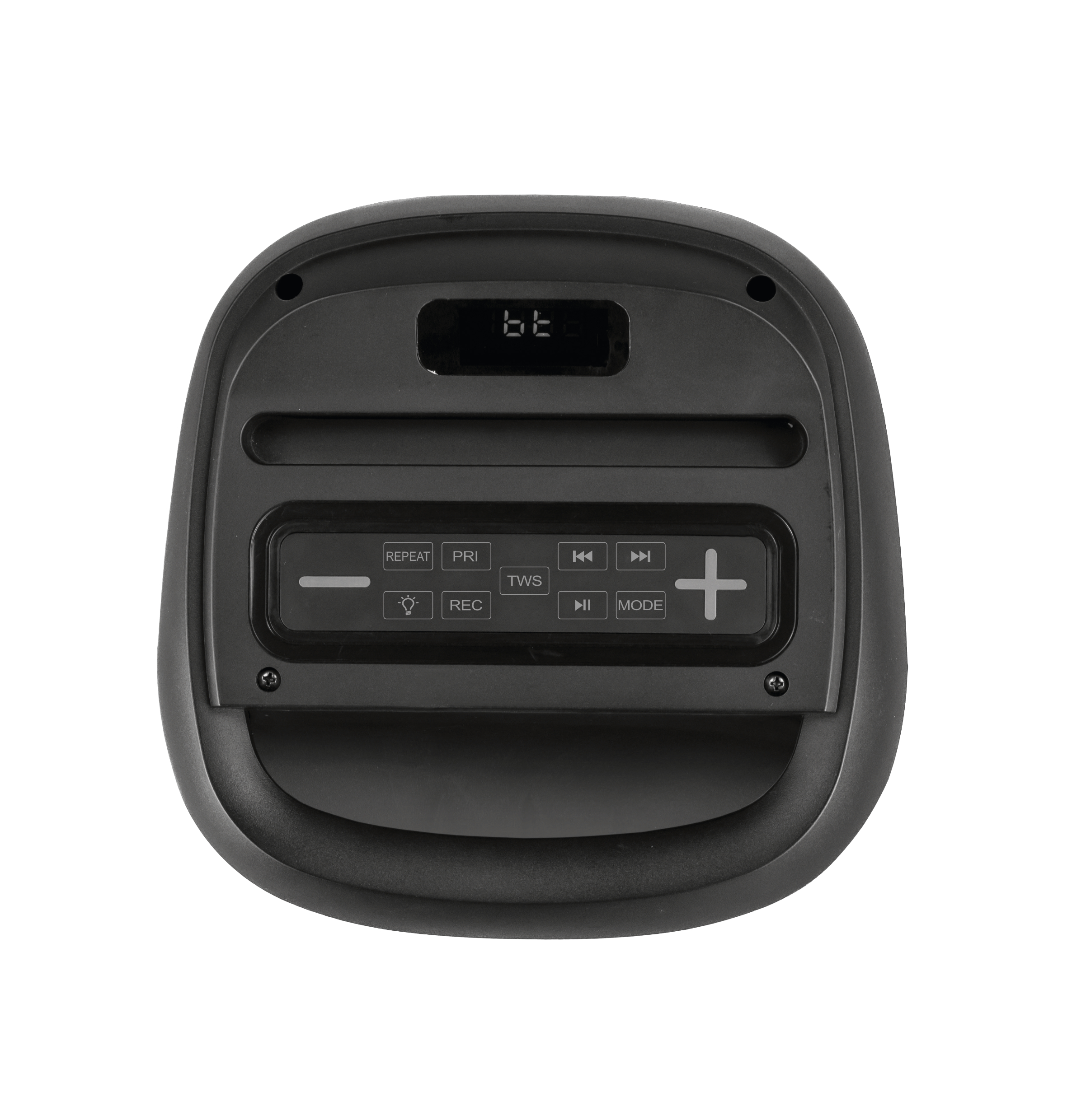 Party box con woofer da 8″ per un suono pulito e potente in una dimensione contenuta. Offre un’ottima autonomia grazie alla batteria ricaricabile da 3600mA. Frontalmente presenta un display mentre i comandi e le prese sono sulla parte superiore. Oltre a leggere brani MP3 da chiavette e schedine, è in grado di collegarsi tramite bluetooth a smartphone e tablet. Registra su USB e offre funzione eco sul microfono. Si ricarica tramite comune cavo USB TipoC. Include un radiomicrofono e un telecomando per il controllo a distanza.